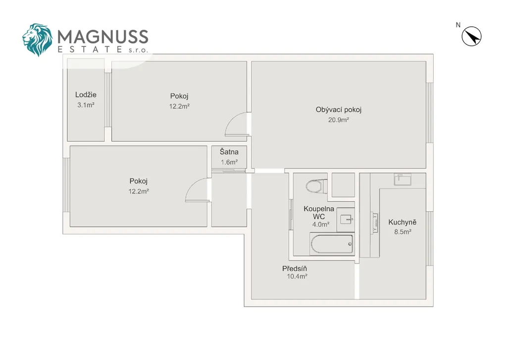 Velkou výhodou je dostatek úložného prostoru – k dispozici je prostorná šatna v chodbě. Na podlahách jsou plovoucí podlahy v pokojích, v kuchyni, chodbě a koupelně je položena keramická dlažba. V bytě je rovněž třífázový proud a kompletně nové elektrické rozvody. K bytové jednotce náleží také sklepní kóje v suterénu domu.
