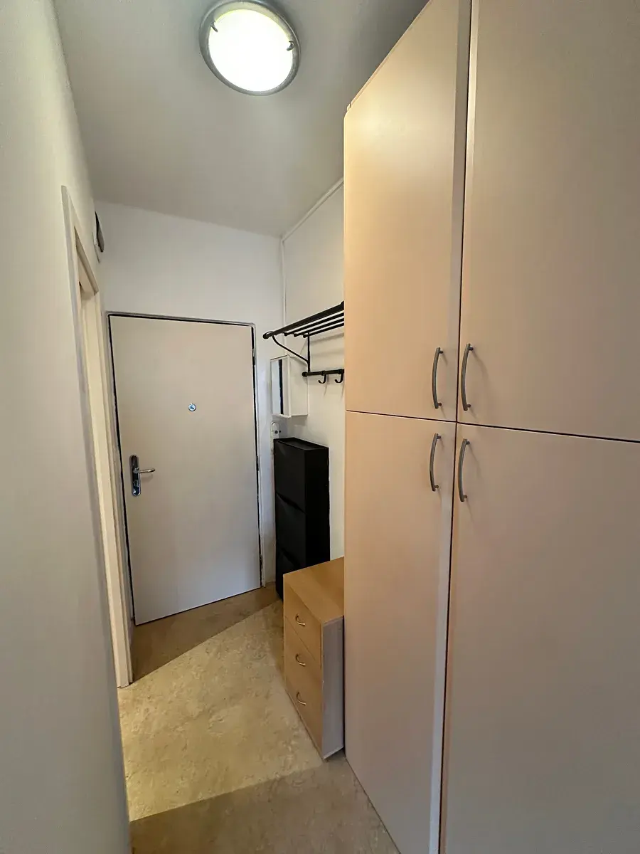 Pronájem částečně vybavené garsonky v centru městské části Děčín I Děčín, ulice Řetězová. Byt je velmi světlý, čistý, prakticky uspořádaný. Je vybavený bytelným moderním vestavěným nábytkem s dostatkem úložného prostoru. Kuchyň je jednoduchá s novým sporákem, v koupelně je bezbariérový sprchový kout, umyvadlo, wc mísa a prostor na pračku a sušičku. Okno je vybaveno žaluziemi.
