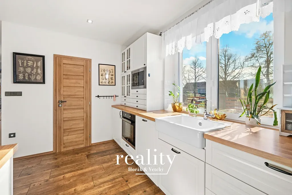 Kuchyně je plně vybavená, světlá a okamžitě připravená k používání. Přirozeně navazuje na jídelní a obývací část a tvoří otevřený, velmi příjemný prostor.
