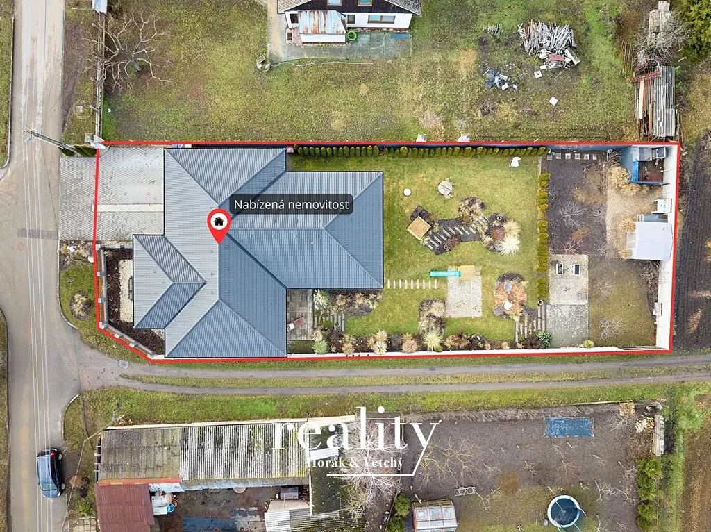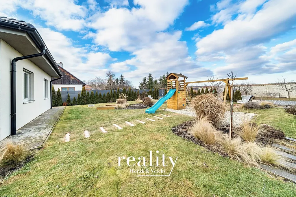Jednou z hlavních předností domu je rozlehlá, udržovaná a plně využitelná zahrada, která nabízí dostatek prostoru pro rodinný život i odpočinek.