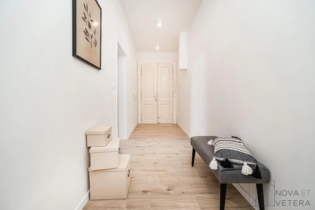 Světlý byt o dispozici 2+kk a velikosti 58,3 m2 se nachází v 2.NP historického cihlového domu. Byt je orientovaný na dvě světové strany. Jedna strana je situována na jih, druhá pak na východ.