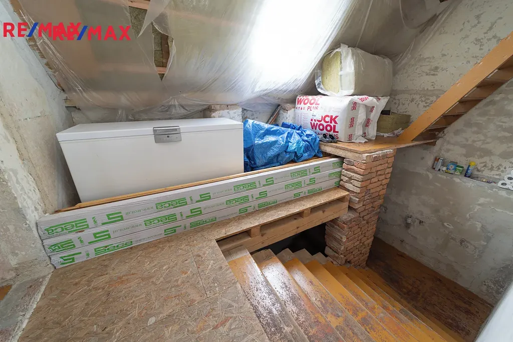 Ve druhém patře je započatá rekonstrukce, která nabízí možnost vybudování samostatné bytové jednotky s dispozicí pokojů 2+1 nebo 3kk.
