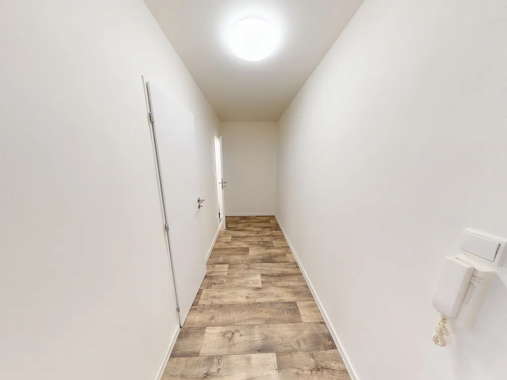 Byt prošel kompletní rekonstrukcí – má nově položenou PVC podlahu, moderní kuchyň na míru s vestavěnými spotřebiči a zděnou koupelnu. V koupelně je vana, umyvadlová skříňka a přípojka na pračku.