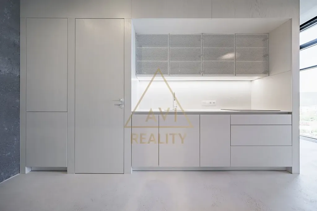 Byt je vybaven luxusní kuchyní se špičkovými spotřebiči, elegantní koupelnou a samostatnou místností, která poskytuje dostatek prostoru pro všechny vaše věci a pračku a sušičku. Dominantou bytu je vestavěné patro na spaní 15m2, které efektivně rozšiřuje obytnou plochu o další užitečné metry. Byt lze dozařídit nábytkem.