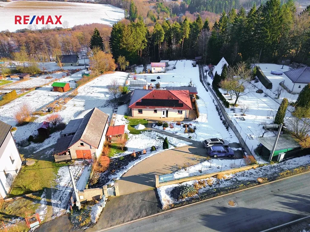 Na pozemku se nachází zateplený zděný dům o dispozici 5+kk, ve velmi dobrém technickém stavu, připravený k okamžitému užívání. Dům je vytápěn tepelným čerpadlem s teplovodním podlahovým topením, ohřev vody zajišťuje bojler 200 l. Energetickou soběstačnost podporuje fotovoltaická elektrárna 10 kWh se záložním zdrojem a baterií 10 kWh, díky čemuž jsou provozní náklady velmi nízké (cca 3 000 Kč měsíčně). Energetická třída B.