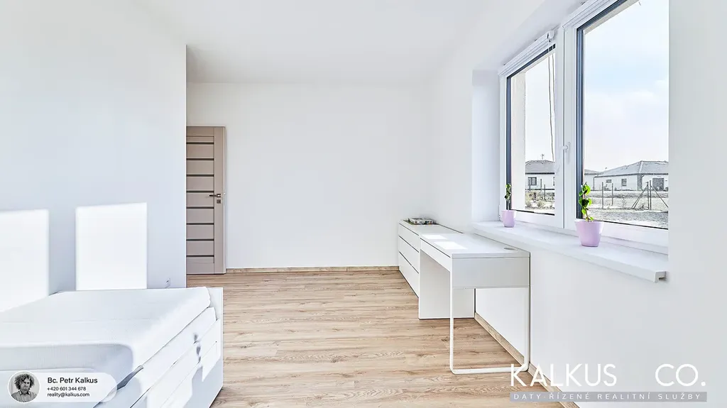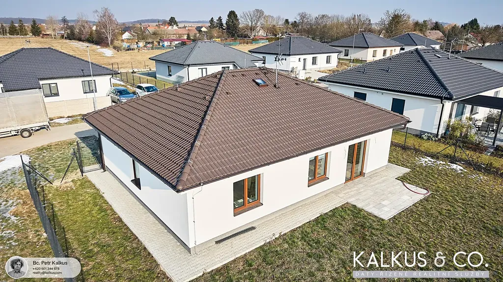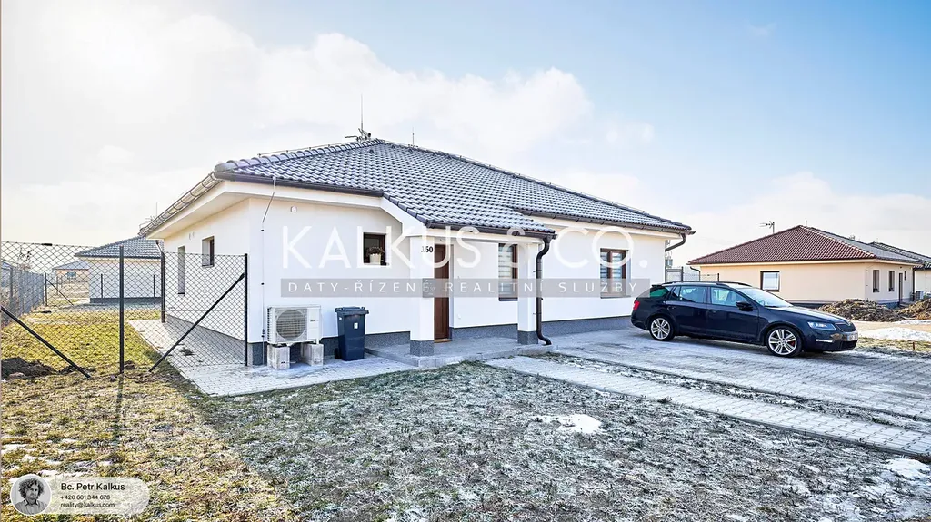 rodáme nadstandardně provedenou zděnou novostavbu 5+kk v obci Sopřeč. Dům typu bungalov se zastavěnou plochou cca 150 m² včetně terasy (užitná plocha 104 m² + cca 18 m² půdního prostoru) je umístěn na rovinatém pozemku o výměře 635 m². Nemovitost je napojena na veškeré dostupné inženýrské sítě – elektřinu 230 V, obecní vodovod i kanalizaci.