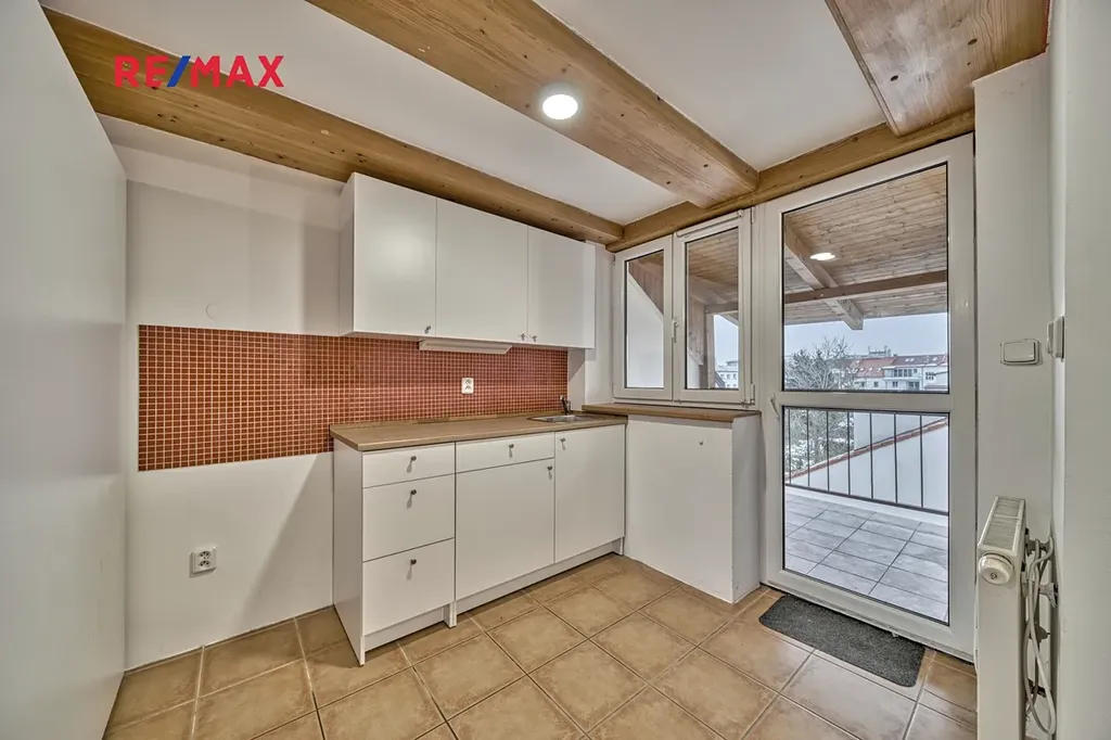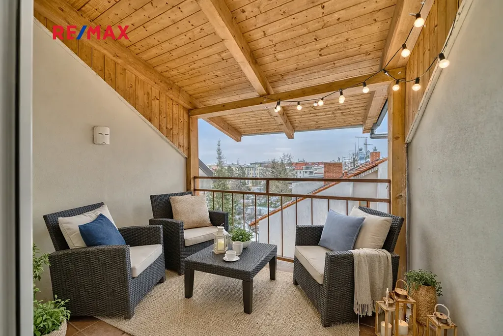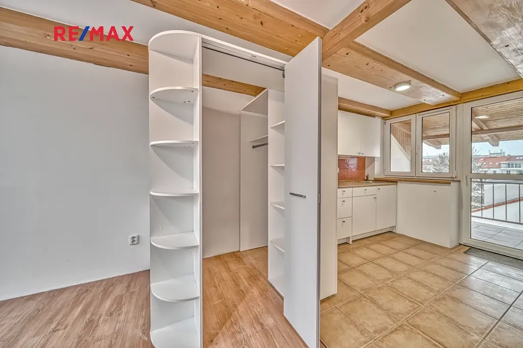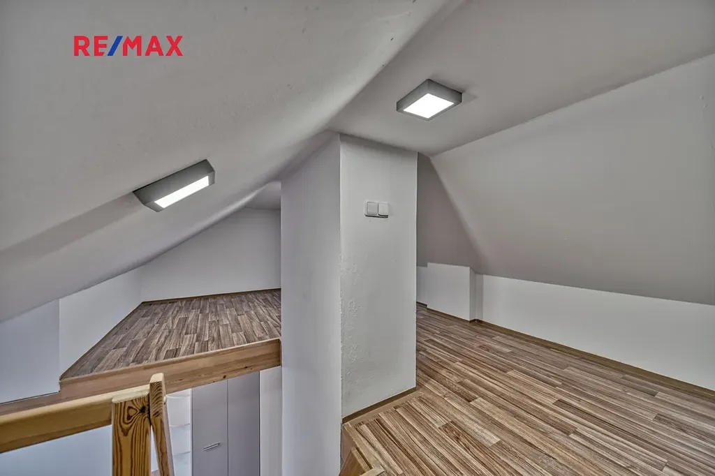 Byt se nachází ve 4. nadzemním podlaží cihlového domu bez výtahu. Dispozice je praktická a nabízí dostatek soukromí. Obývací pokoj je propojen dřevěným schodištěm s úložným/podkrovním prostorem nad bytem. Dále byt disponuje samostatným pokojem, kuchyní se vstupem na lodžii, koupelnou s rohovou vanou a samostatným WC.