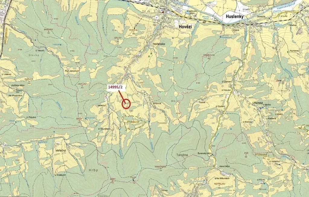 Lesní pozemek o výměře 330 m2, parcelní číslo 14995/2, podíl 1/1, katastrální území Hovězí, obec Hovězí, obec s rozšířenou působností Vsetín, okres Vsetín, Zlínský kraj.