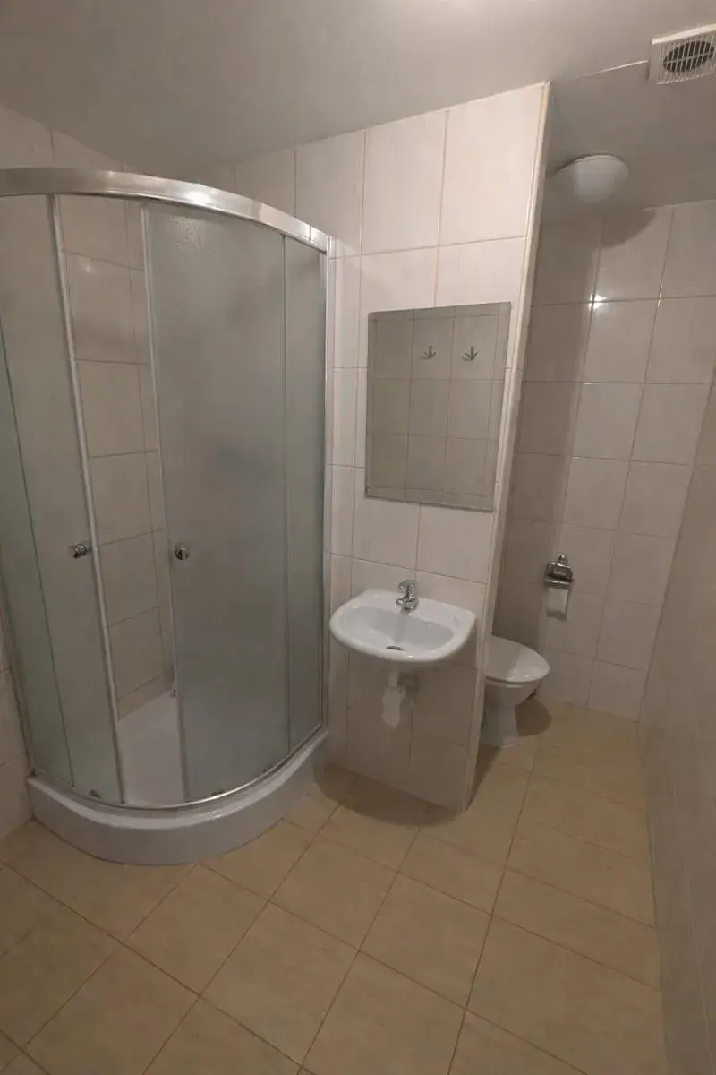 V kuchyni je kuchyňská linka s elektrickými kamny. V koupelně je sprchový kout, umyvadlo se zrcadlem a WC, které je odděleno příčkou. Místnosti jsou světlé a prostorné.