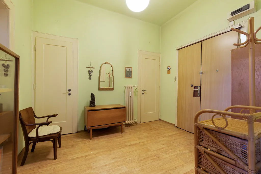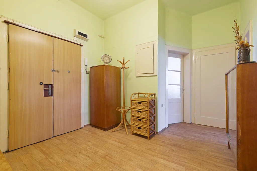 Byt vás přivítá prostornou vstupní halou, vysokými stropy, původními parketami, masivními dvojkřídlými dveřmi a dřevěnými kastlovými okny, která dnes v podobných domech vídáme už jen zřídka. Dispozice nabízí kuchyni s velkou spíží, tři prostorné neprůchozí pokoje, samostatnou toaletu a praktické úložné prostory. Součástí jednotky je také sklepní kóje o velikosti 2,8 m².