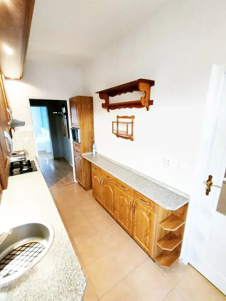 Byt je v pěkném stavu, kompletně vybaven. V kuchyni se nachází lednice, stůl a židle, v obývacím pokoji stěna a pohovka, v ložnici šatní skříň a postel. V koupelně je pro nájemce připravena pračka a sušička.