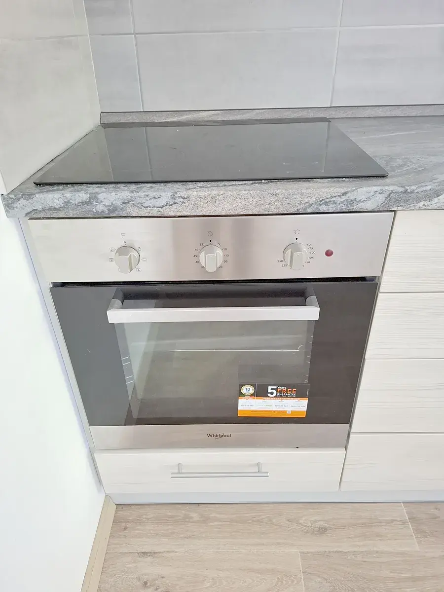 V obytné místnost o ploše 20m2 se nachází nová kuchyňská linka se čtyřplotýnkovou sklokeramickou varnou deskou a vestavěnou troubou.