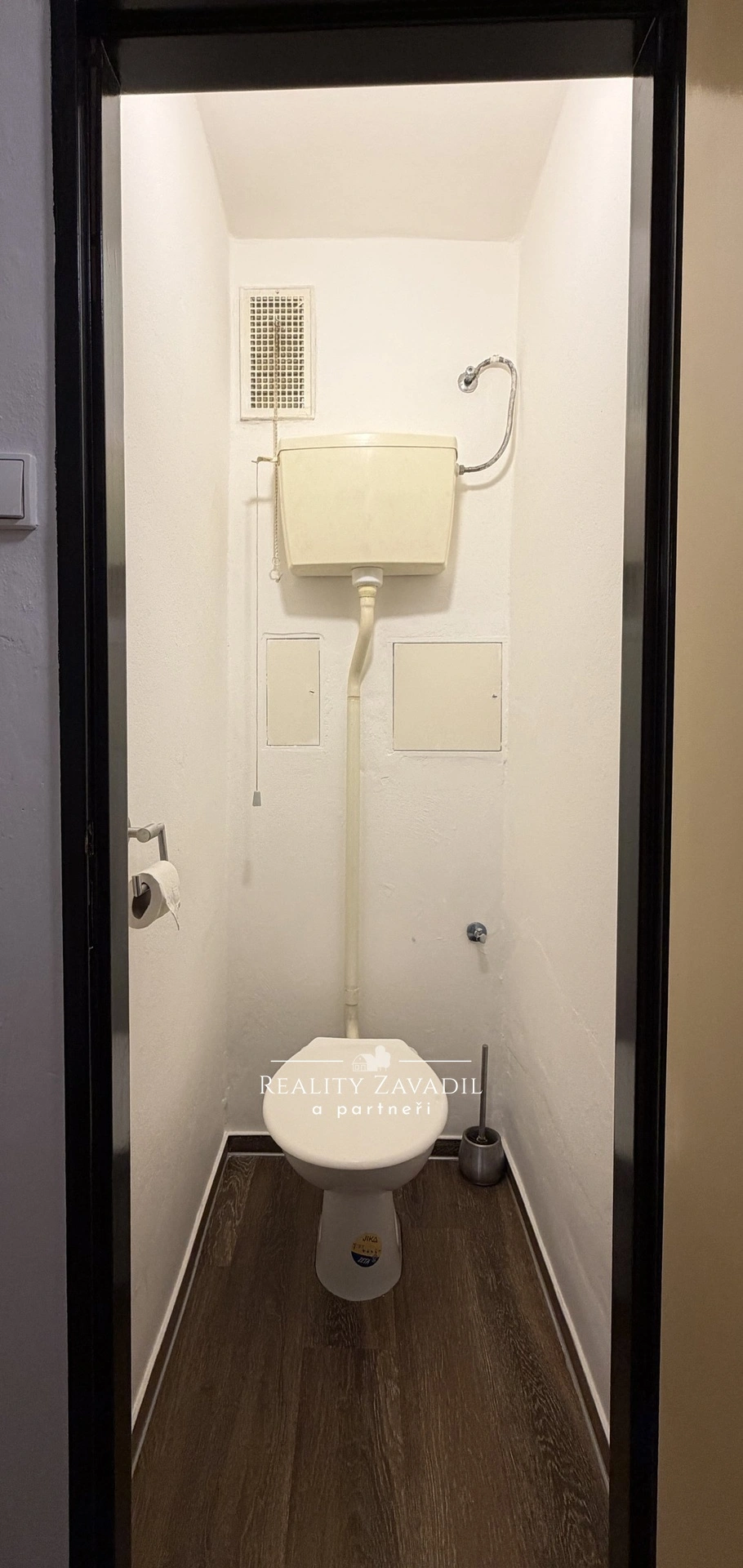 Z chodby je vstup na samostatnou toaletu a do koupelny, součástí které je sprchový kout , umyvadlo a příprava pro pračku. Dále do obývacího pokoje s balkónem, ze kterého je krásný výhled do zeleně. Obývací pokoj je průchozí do ložnice. Dětský pokoj je přístupný jak z chodby, tak z kuchyně.