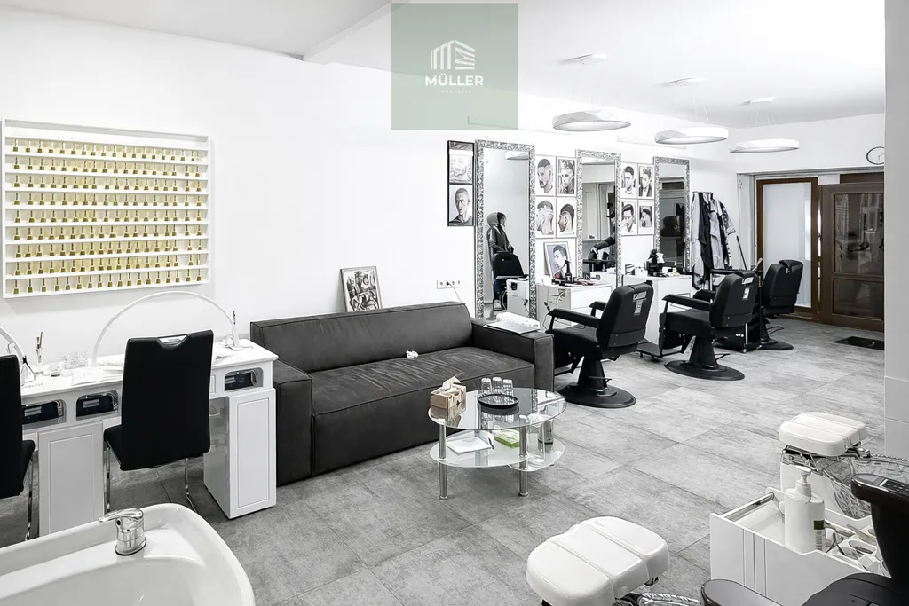 Salón je nově zrekonstruovaný, ve velmi svěžím (fresh) stavu, stejně tak i veškerý nábytek a zařízení, které je možné odkoupit nebo pronajat – vše je nové a ve výborném stavu.