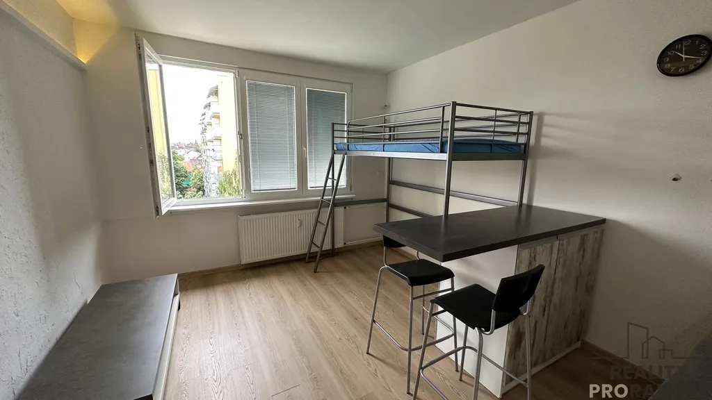 Vkusně zrekonstruovaný byt 1+kk přímo u IGY centra v klidné ulici. Částečně zařízený byt se nachází v šestém patře panelového domu po revitalizaci. Kuch. linka, patro na spaní, koupelna se sprchou, WC. Plovoucí podlaha, ústřední dálkové topení, plastová okna. Měsíční zálohy 2.000,- Kč. Kauce 20.000,- Kč, provize 12.000,- Kč. Volný od 1.3.2026.