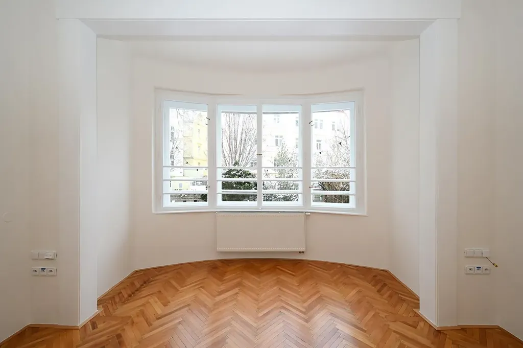 Na podlahách jsou krásné dřevěné parkety a dlažba.