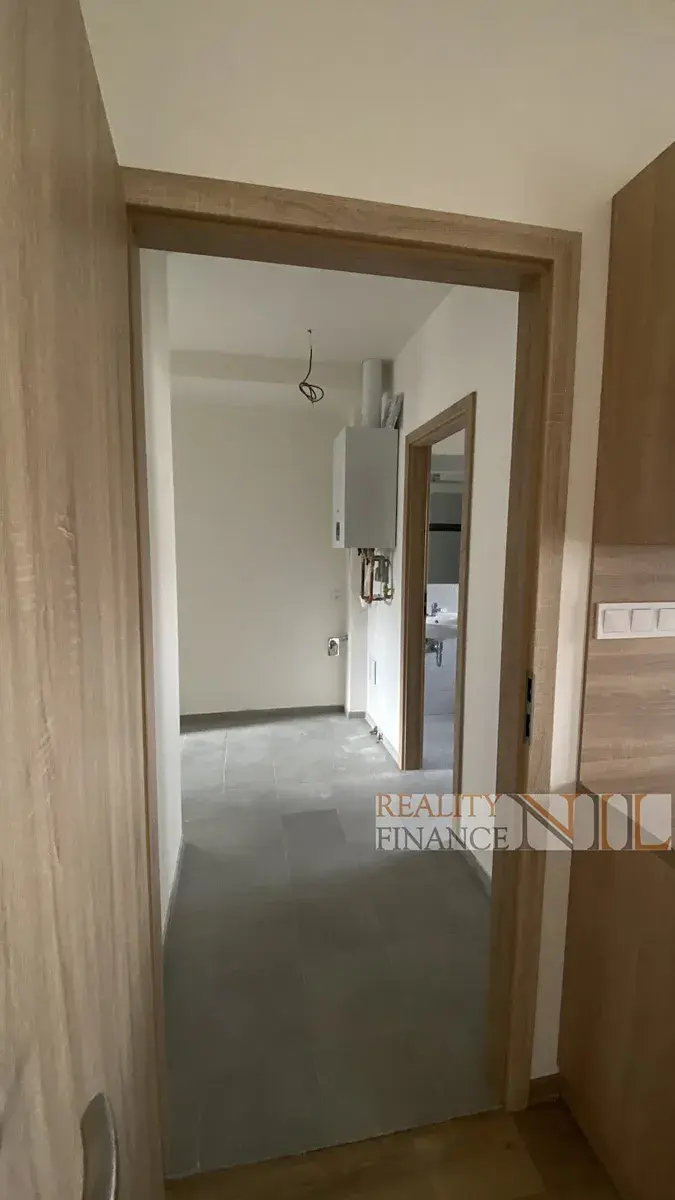 Byt je vybaven kuchyňskou linka včetně vestavěných spotřebičů (elektrická trouba, varná deska, digestoř). Podlahy jsou v kombinaci vinylu a dlažby. Vytápění a ohřev vody je pomocí plynového kotle.