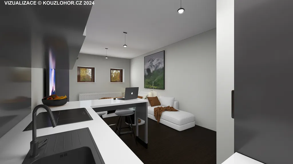 V ceně apartmánu je kuchyňská linka, prostorný sklep a parkovací stání.