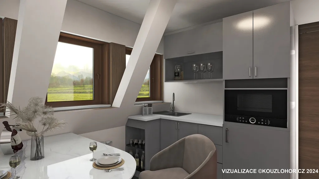 V ceně každého apartmánu je kuchyňská linka, prostorný sklep a parkovací stání.