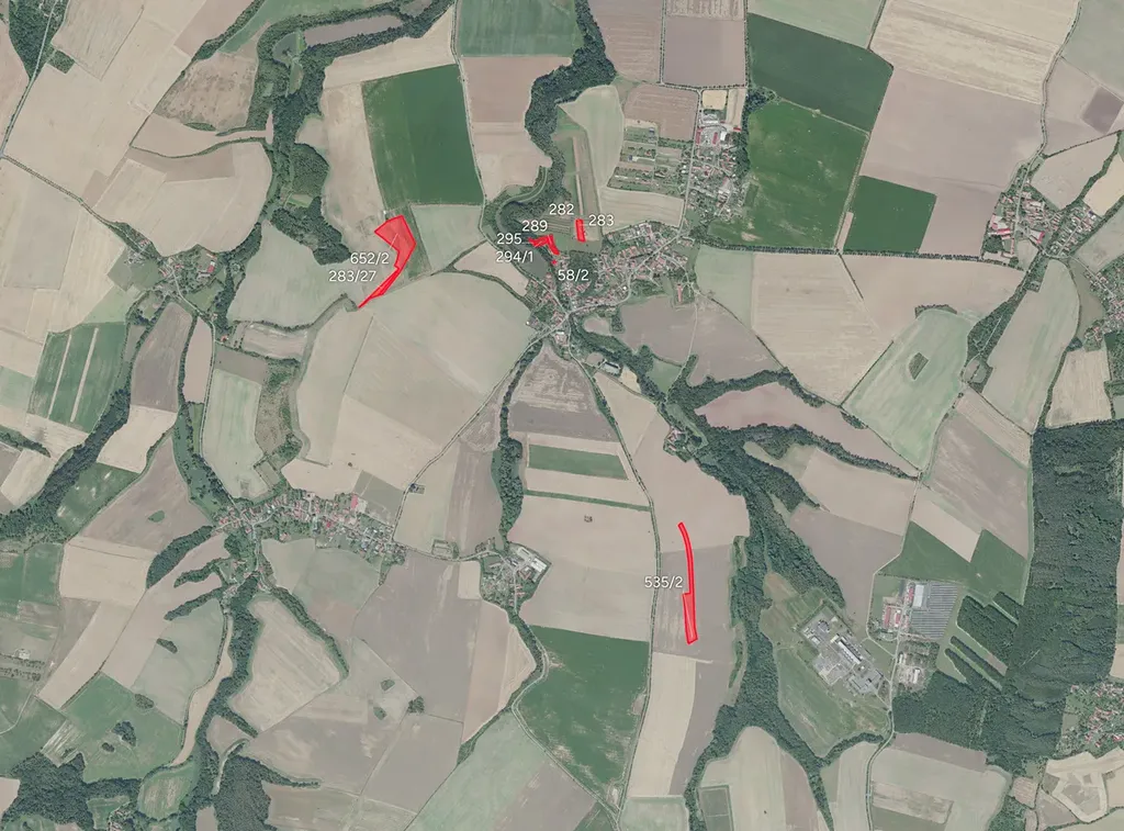 Celková výměra všech uvedených pozemků je 41 268 m², z čehož je předmětem prodeje 14 098 m² v odpovídajících podílech.