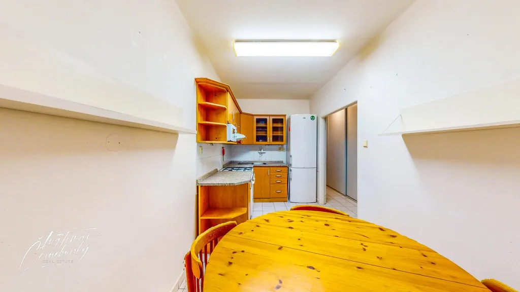 Dispozice bytu je praktická a dobře promyšlená. Dvě lodžie orientované na jihovýchod zajišťují dostatek denního světla a příjemné slunce zejména v dopoledních hodinách. Byt je částečně vybavený a nabízí nadstandardní množství úložných prostor dvě velké vestavné skříně a samostatnou místnost, kterou lze využít jako komoru nebo šatnu dle potřeb nájemníků. K bytu dále náleží sklep a k dispozici je také další komora umístěná na chodbě ve společných prostorách domu.