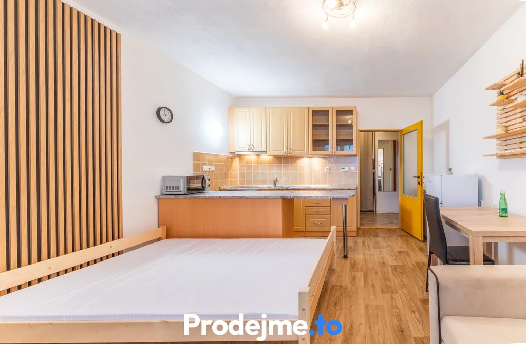 Byt je řešen jako jednopokojový s kuchyňským koutem a je plně vybaven – připraven k okamžitému nastěhování.