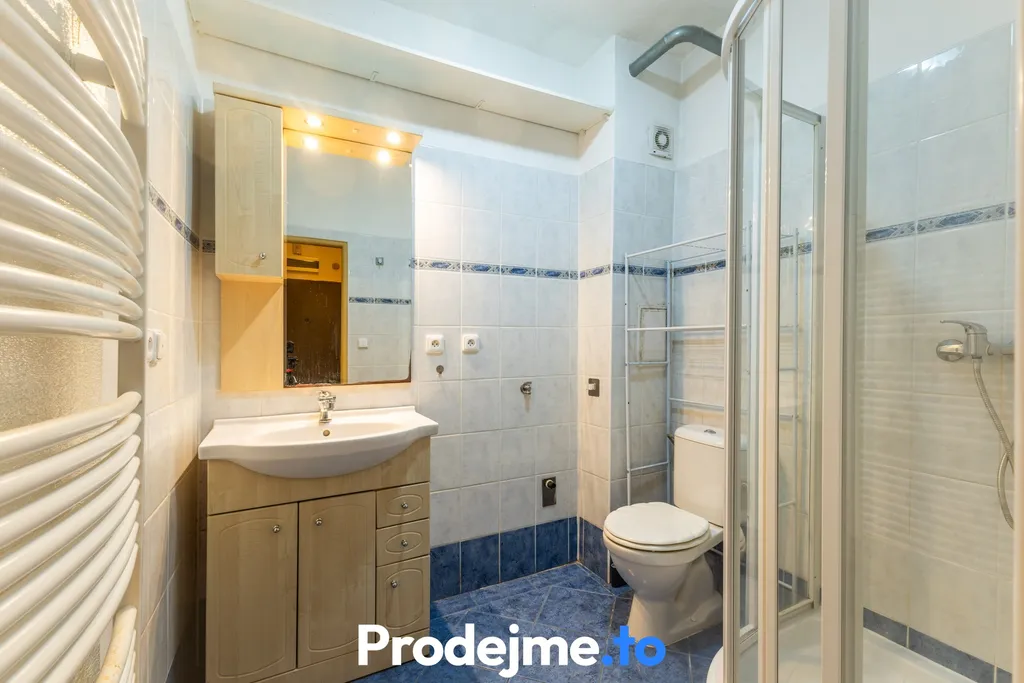 Ve vstupní chodbě se nachází vestavěná skříň s dostatkem úložného prostoru. Koupelna s WC je vybavena sprchovým koutem a je zde vyhrazené místo pro pračku (vhodná pračka typu slim nebo s horním plněním).