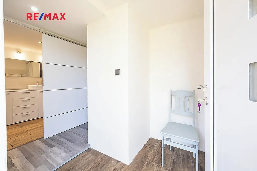 V přízemí se nachází koupelna s toaletou, kuchyň a technické zázemí. V prvním patře je obývací a spací prostor s krásným výhledem na protější kopec a pod střechou je možno prostor využít ke spaní nebo jako pracovní kout.