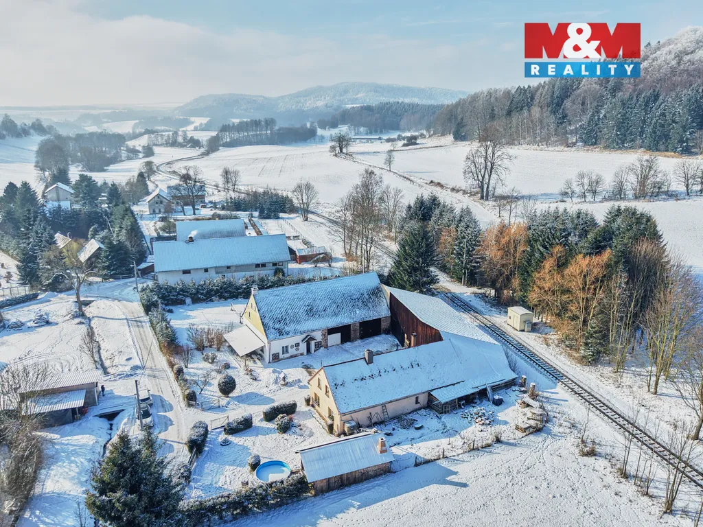 Nabízíme k prodeji usedlost (dva rodinné domy spojené prostornou stodolou) s pozemky v malebné vísce Bohdašín. Oba domy jsou zděné, napojené na veřejný vodovod, odpady stažené do septiku, vytápěny jsou společným kotlem na tuhá paliva, zavedená elektřina, internet, ohřev teplé vody bojlerem a průtokovým ohřívačem. Usedlost je ideální volbou pro ty, kteří hledají klidné bydlení s dostatkem soukromí. Jeden dům (1883) je nyní využíván jako prosperující pension s kuchyní, dvěma pokoji, koupelnou. Druhý dům (1930) je využíván pro rodinné bydlení. Dispozice: kuchyně, chodba, obyvák, ložnice, koupelna a v 2NP tři pokoje, šatna. Stav nemovitostí je dobrý, probíhá průběžná revitalizace obou domů a realizace fotovoltaiky. Občanská dostupnost dobrá. Jedná se o turisticky atraktivní lokalitu. Teplické, Adršpachské i Broumovské skály. Je tu dostatek možností na cyklo výlety. V zimě jsou upravené běžkařské trasy a sjezdovka.