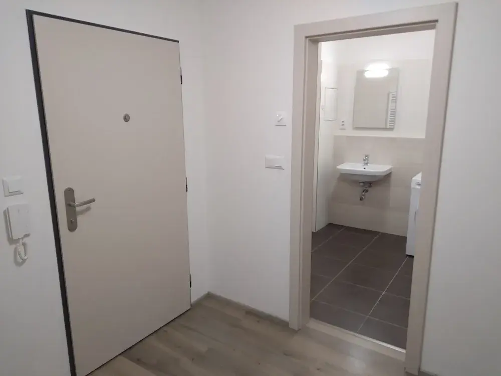 Jednotka se skládá ze vstupní haly, první místnosti s kuchyňským koutem (včetně kuchyňské linky včetně spotřebičů - sklokeramická varná deska, elektrická trouba, digestoř, pracovní desky, zadový panel, osvětlení), z druhé místnosti, z koupelny s vanou, samostatného WC, komory a balkonu. V jednotce je dále i osvětlení ve všech místnostech, žaluzie, garníže na míru, v koupelně zrcadlo s osvětlením.