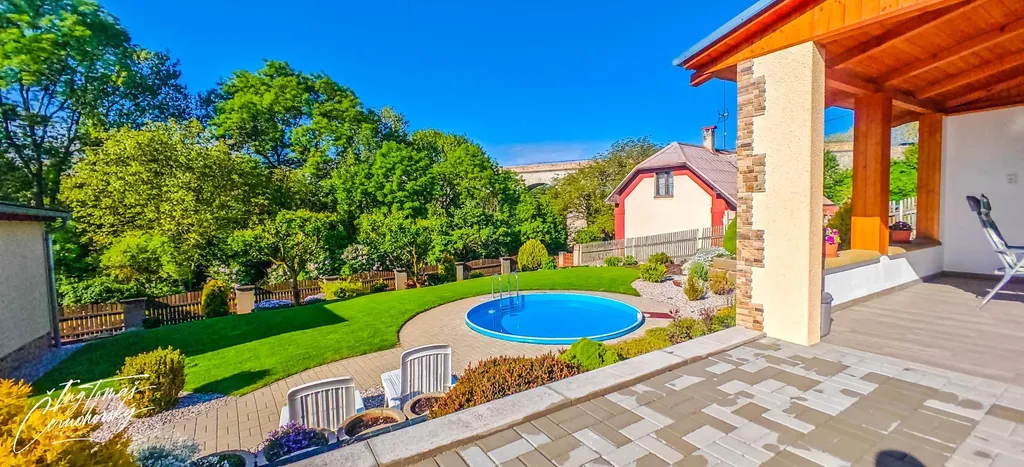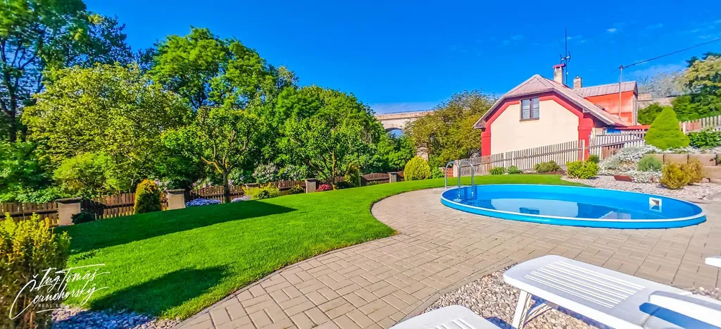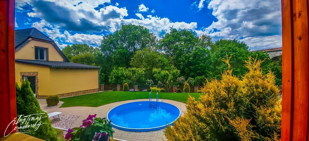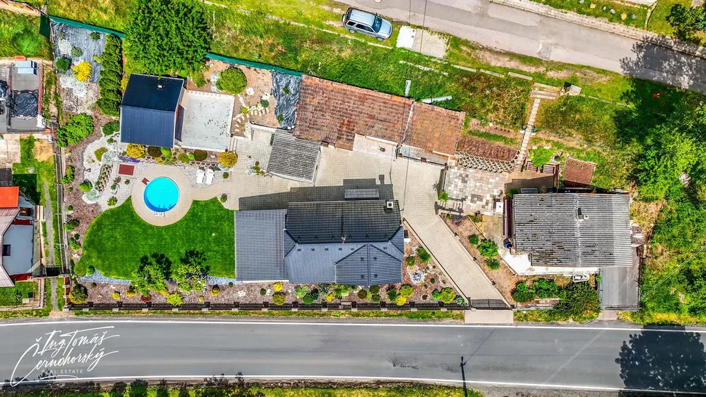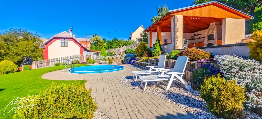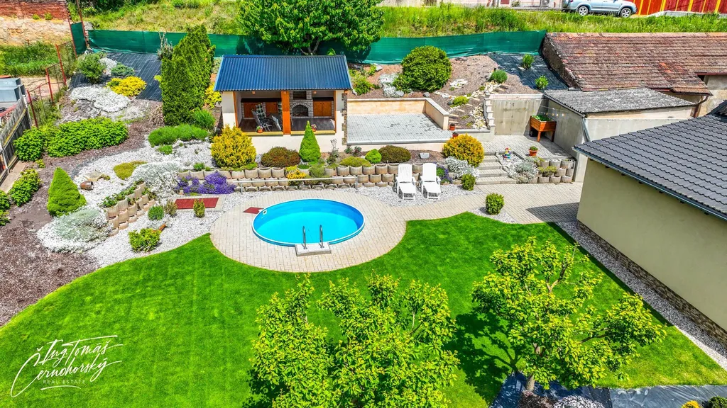 Na pečlivě udržované zahradě se nachází zapuštěný bazén, zastřešené posezení s venkovním krbem a několik kůlen, které nabízejí praktický úložný prostor pro nářadí, kola, dřevo nebo sezónní vybavení. Vše je ve velmi dobrém technickém stavu a připraveno k okamžitému užívání bez nutnosti dalších investic.
