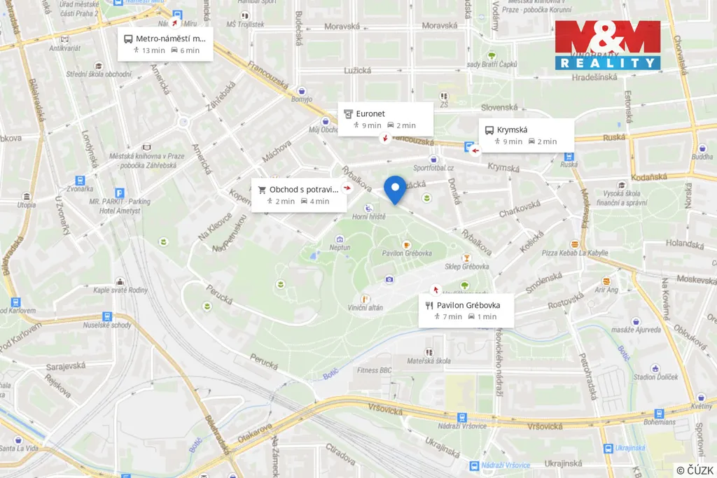 Nabídka pronájmu bytu 2+1 o užitné ploše 60 m² v lukrativní lokalitě na rozhraní Vinohrad a Vršovic, hned u parku Grébovka. Byt se nachází ve 3. patře cihlového domu. Dispozice bytu zahrnuje dva samostatné pokoje, koupelnu se sprchou i vanou a kuchyňský kout v předsíni, samotné wc a komoru. Balkon je dostupný na mezipatře domu. Lokalita nabízí klidné bydlení s výhledem na Prahu a zároveň výbornou dostupnost do centra města. V pěší vzdálenosti 4-10 minut se nachází metro, tramvaj i vlak. Okolí je bohaté na služby a společenské akce v Havlíčkových sadech. Nájem činí 19,5 tis. Kč + 4 tis. Kč poplatky pro 2 osoby. Elektřina se přepisuje na nájemníka. Neváhejte a bydlete v srdci Prahy.