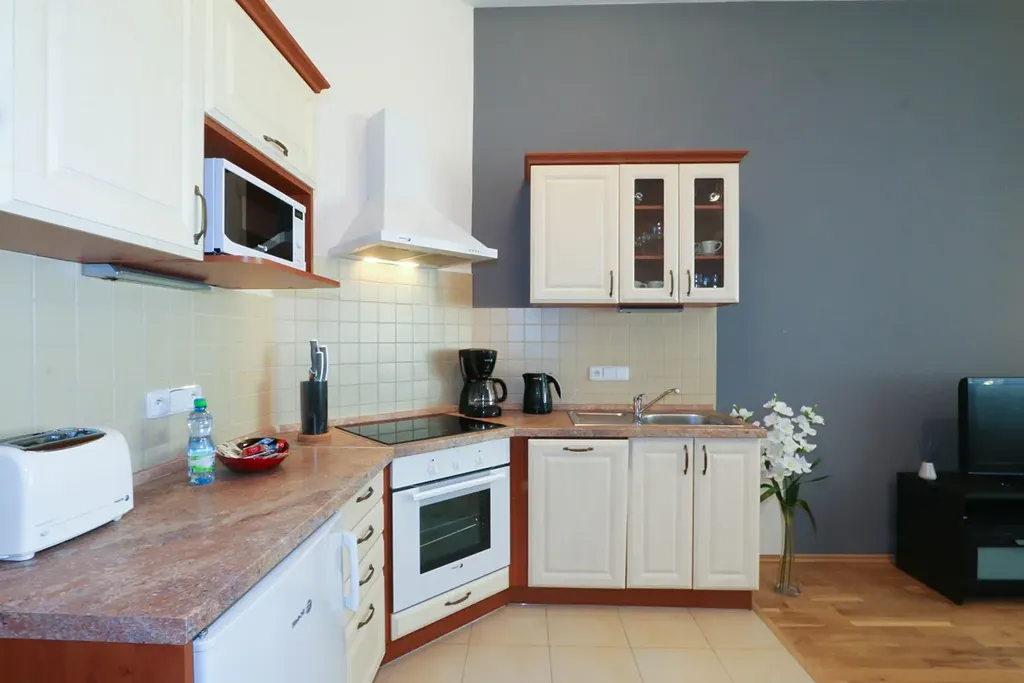 Fully furnished 1 bedroom apartment, 2+kk, 40 sqm, is situated on the ground floor in well maintained building in attractive area close to Náměstí Míru, Na Kozačce street. Apartment consists of entrance hall, living room with kitchenette equipped with all appliances (glass ceramic plate, oven, dishwasher, fridge, freezer, coffee machine, toaster, micro, set of dishes), separated bedroom, bathroom with shower, toilet and washing machine with dryer. The rent CZK 25.000,-/month + services 3.400,-/month + advanced payments for energies. Internet connection and SAT TV is included in the rent. Available 3/2026.
