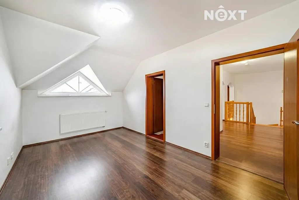 V patře se nacházejí čtyři samostatné pokoje, dvě koupelny a samostatné WC. Jeden z pokojů má přímý vstup na balkon umístěný nad hlavním vstupem do domu – ideální místo pro ranní kávu nebo tiché večerní nadechnutí.