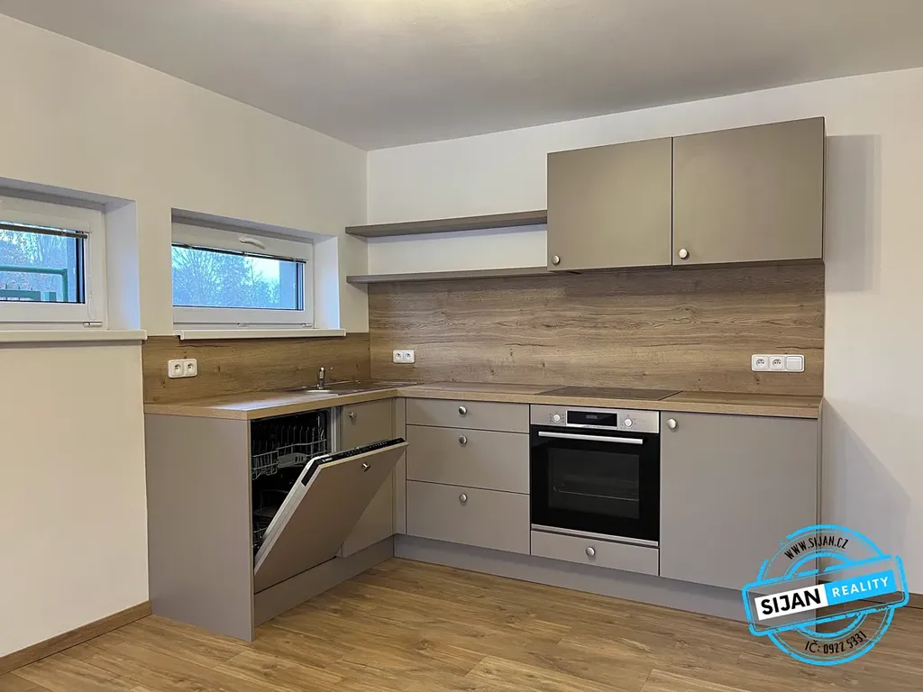 Dominantou bytu je designová kuchyňská linka vybavená vestavěnou myčkou, troubou, indukční varnou deskou a digestoří. Kuchyně je propojena s obývacím pokojem s krásným výhledem do zahrady. K dispozici je ještě ložnice (16,6 m2) a dětský pokoj (10,8 m2).