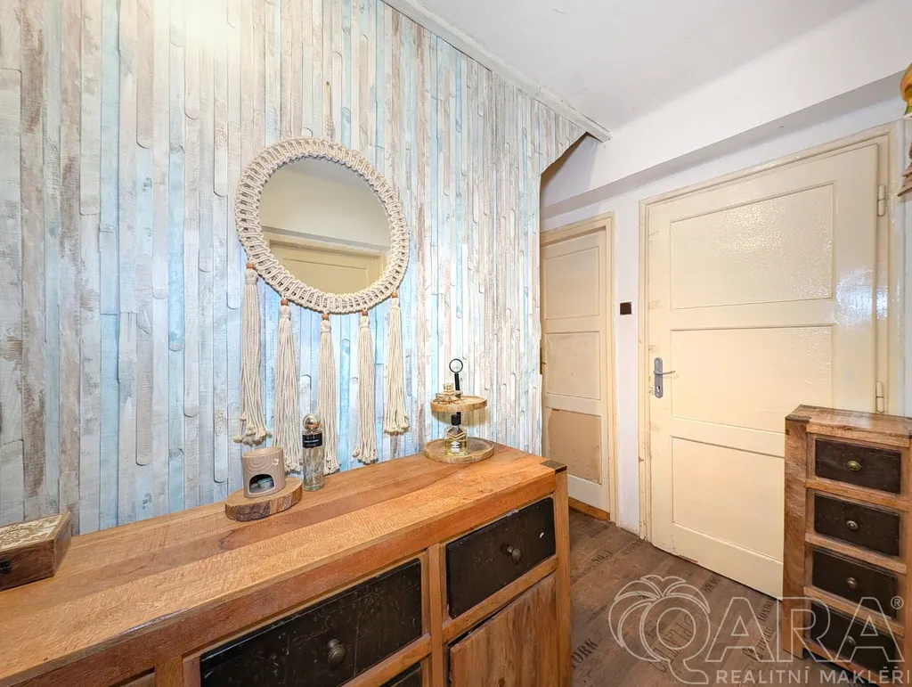 V patře (2. NP) o výměře 25,5 m² se nachází další 1 pokoj a praktický úložný prostor. Ohřev vody zajišťuje bojler (elektro), jehož instalace proběhla v roce 2025. Odpad je řešen jímkou o kapacitě 8 kubíků. K nemovitosti náleží také velká zahrada a praktická kůlna.