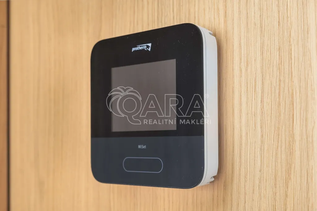 V celém bytě jsou bezfalcové interiérové dveře na míru s magnetickými zámky, sladěné s ostatními dřevěnými prvky. Osvětlení dodalo značkové studio – světla jsou stmívatelná s různými režimy. Podlahy jsou vinylové, v předsíni, koupelně a na WC je dlažba.