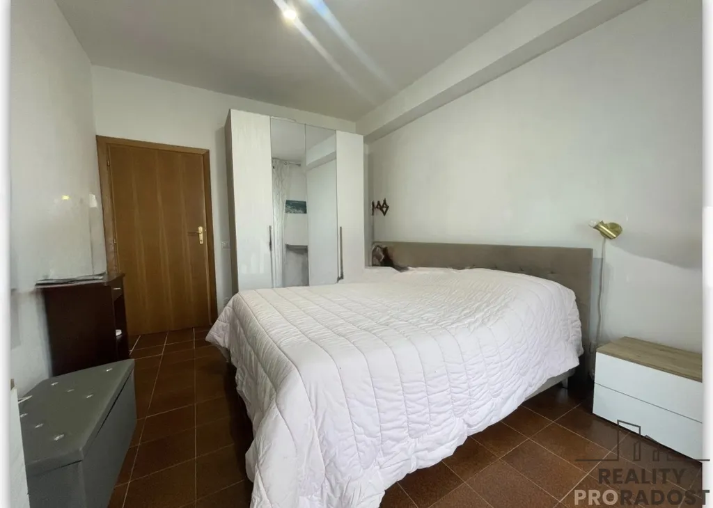 Obývací pokoj i hlavní ložnice vedou přímo na nádhernou terasu, která vytváří příjemnou atmosféru. Byt je velmi dobrém stavu a disponuje obývacím pokojem s otevřenou kuchyní, ložnicí s manželskou postelí, jednolůžkovým pokojem s vystavěnou skříni a koupelnou s oknem a sprchovým koutem.