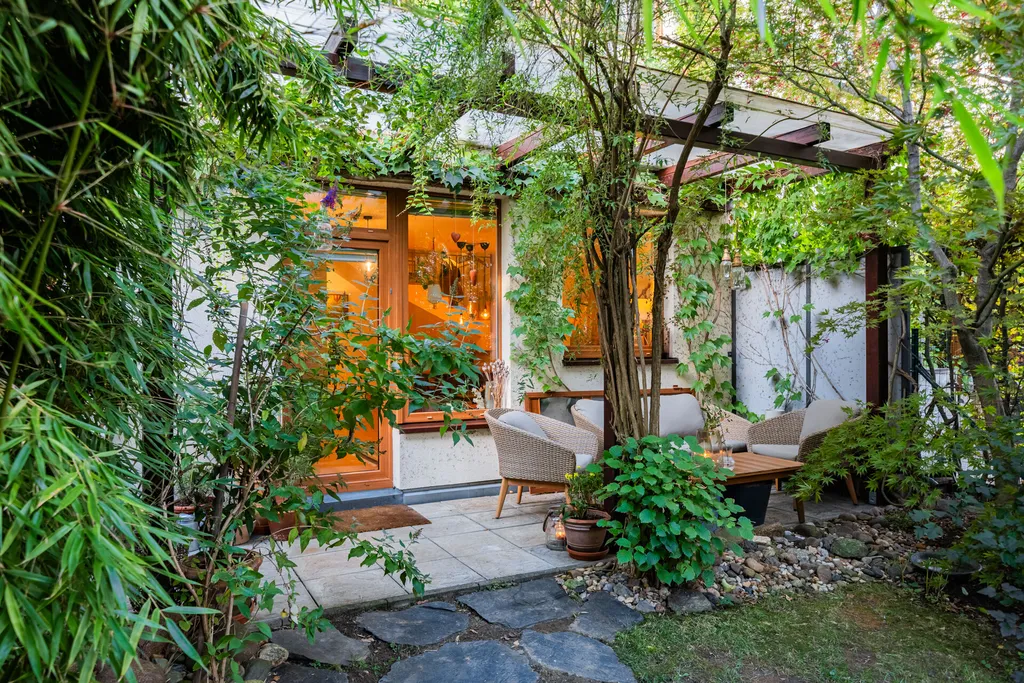 Přízemí bytu tvoří obývací pokoj se vstupem na terasu a dále do zahrady. Terasa je zastřešená a zvětšuje tak užitný prostor bytu. Zahrada je rovinatá se vzrostlými dřevinami, které poskytují nejen pocit, že jste součástí přírody, ale poskytují i velmi příjemné klima v přízemní části bytu. Obývací pokoj je prakticky propojený s jídelnou a kuchyňským koutem. Kuchyně je vybavená kuchyňskou linkou se spotřebiči. Dále je zde prostorná ložnice s vestavnými skříněmi. Z ložnice je také umožněn přístup na terasu. Samozřejmostí je koupelna se sprchovým koutem a toaletou. Velmi příjemný je fakt, že ze zahrady vede branka k zadní přístupové cestě, na kterou se dostanete pohodlně autem, což je velmi praktické v rámci zásobování či stěhování.