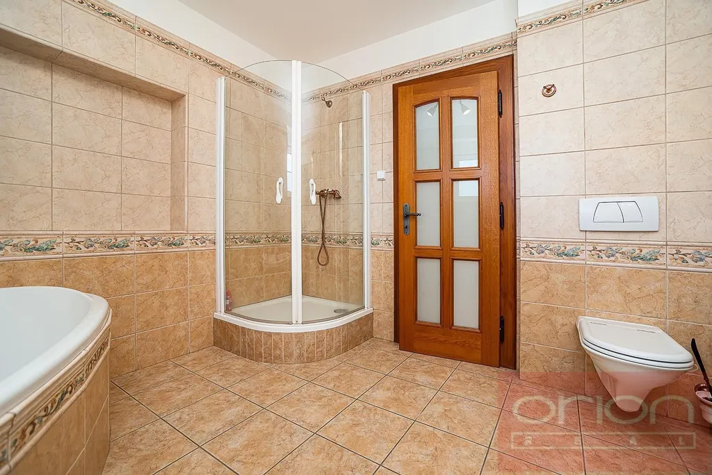 Nabízíme k pronájmu velmi hezký, nezařízený rodinný dům 6+1 (250 m² ) se zahradou a terasou v Praze 5 - Řeporyje. Tento samostatně stojící dům se nachází v zástavbě rodinných domů, v okolí je veškerá občanská vybavenost. Dům je hezky prostorný a nabízí v přízemí vstupní halu s vestavěnými skříněmi, velký reprezentativní obývací pokoj s krbem a se vstupem na terasu a zahradu, plně vybavenou kuchyň s jídelnou, 1 ložnici, koupelnu s toaletou a technickou místnost. V patře jsou 3 ložnice, koupelna s toaletou (vana, sprchový kout), obytná galerie. Dále je zde samostatný pokoj s kuchyňským koutem a s koupelnou s toaletou. K vybavení domu patří dřevěné podlahy a dlažba, plynové topení, alarm a garáž pro 2 auta. Na zahradě o velikosti 700 m² je venkovní krb a velký zahradní domek. Zahrada poskytuje dostatek soukromí. V místě je veškerá občanská vybavenost: škola, školka, v okolí jsou obchody Billa, Lidl, MAKRO. Dobré dopravní spojení MHD, vlakem a autem do centra, ke stanici metra, do nákupního centra Nové Butovice a Zličín a na letiště Václava Havla. Snadná dostupnost na nájezd na Pražský okruh.