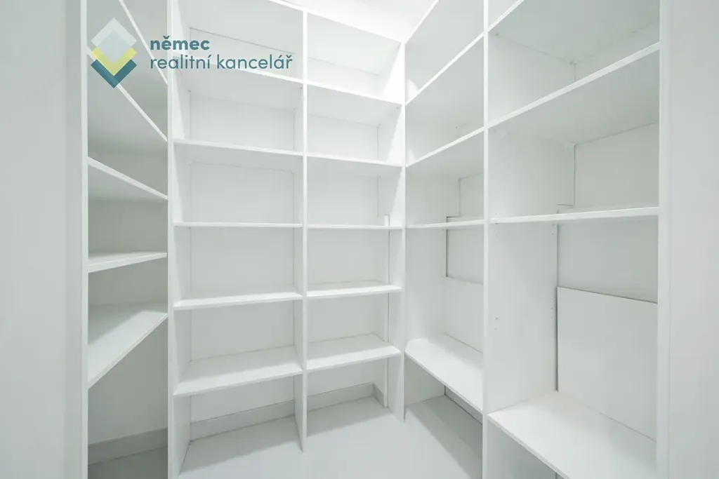 Po vstupu do bytu se octnete v zádveří s praktickými šatními prvky na míru a zrcadlem. Celkově chodba nabízí 8,8 m² a je z ní možné vstoupit doleva do praktické komory (2,9 m²), dále do koupelny (6,3 m²) s vanou, pračkou, závěsným wc a umyvadlovou koupelnovou skřínkou. Na chodbu navazuje obrovský obývací pokoj s kuchyňskou linkou na míru (a barovým pultem). Obývák je velmi světlý díky několika oknům a zejména tomu francouzskému na balkón. Ten je rohový a nabízí výhled do klidu. Ložnice je samostatná a je vybavena šatní skříní na míru.