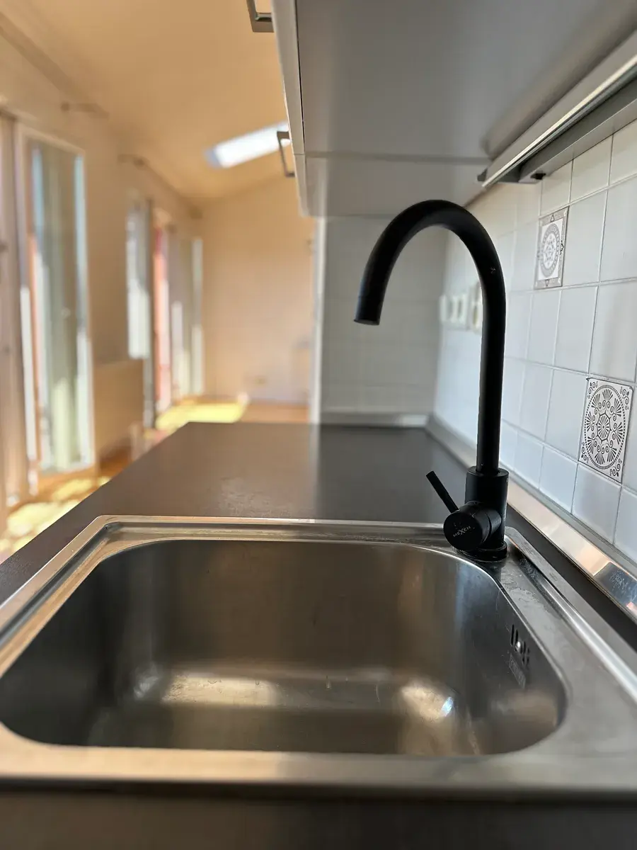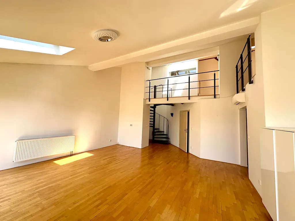 Přes předsíň se vstupuje do světlého obývacího prostoru s kuchyňským koutem. Jemné moderní rysy doplňují původní dřevěné trámy. Celou atmosféru dotváří ocelové schodiště. V bytě jsou dvě koupelny i terasa k příjemnému posezení a mnoho dalším milých detailů, které Vás nepřestanou uchvacovat.