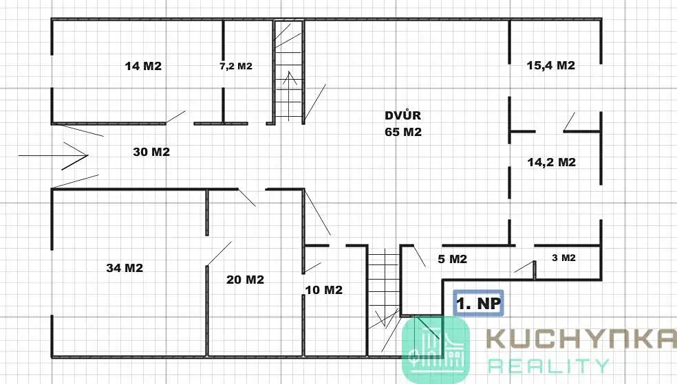 Plocha místností s podkrovím cca 407 m2