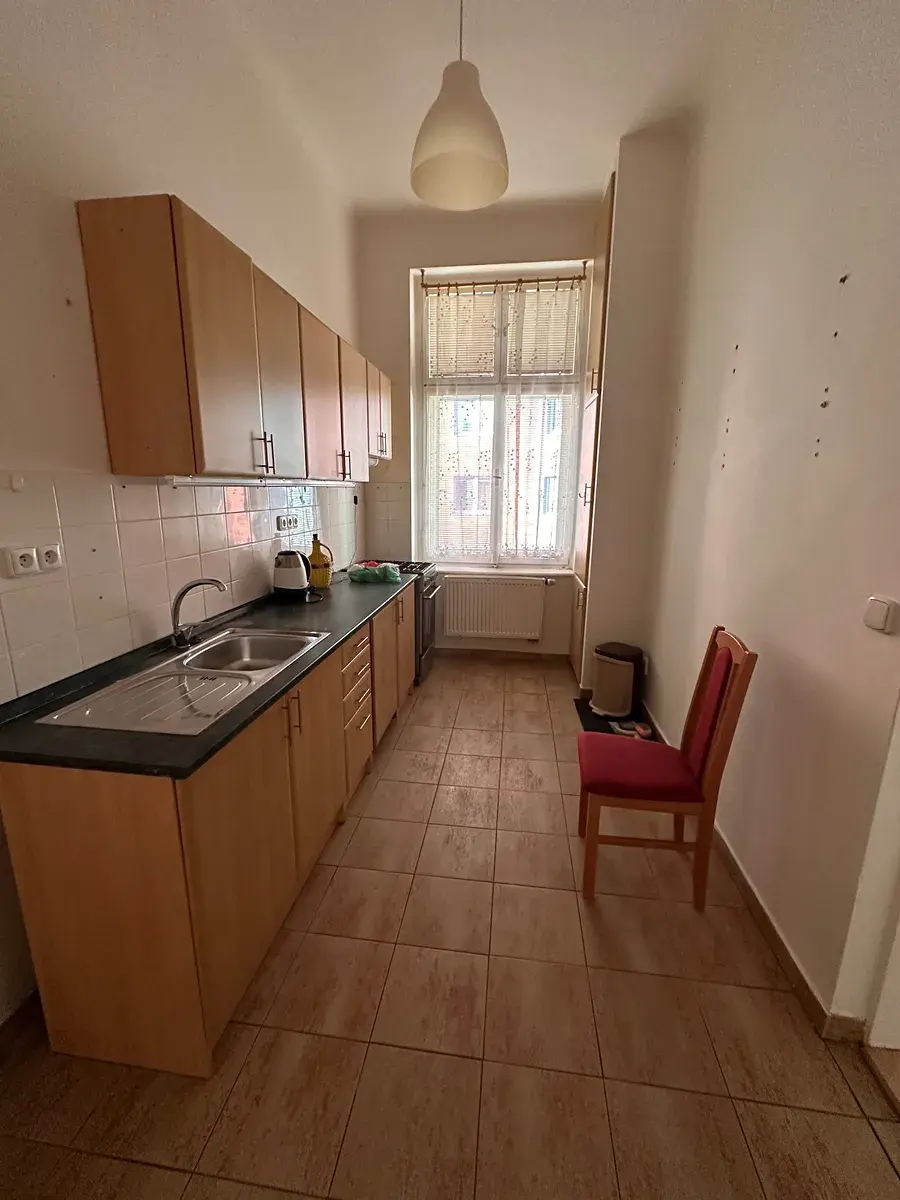 Byt je nezařízený vyjma kuchyňské linky.