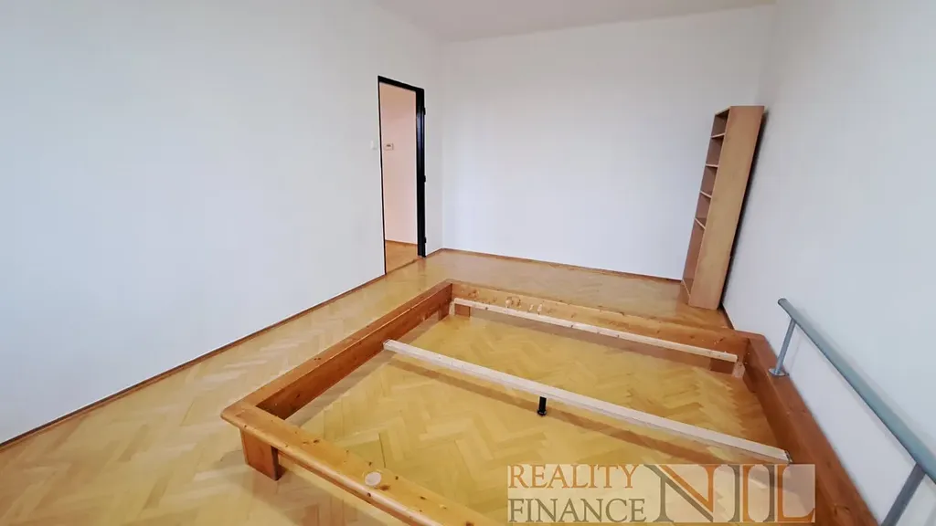 Byt je velmi prostorný, dominantou je velký obývací pokoj, ze kterého je vchod do ložnice. V bytě je také praktická komora a dvě vestavěné skříně. Další vybavení bytu: kuchyňský stůl + 4 židle, dřevěný rám manželské postele.