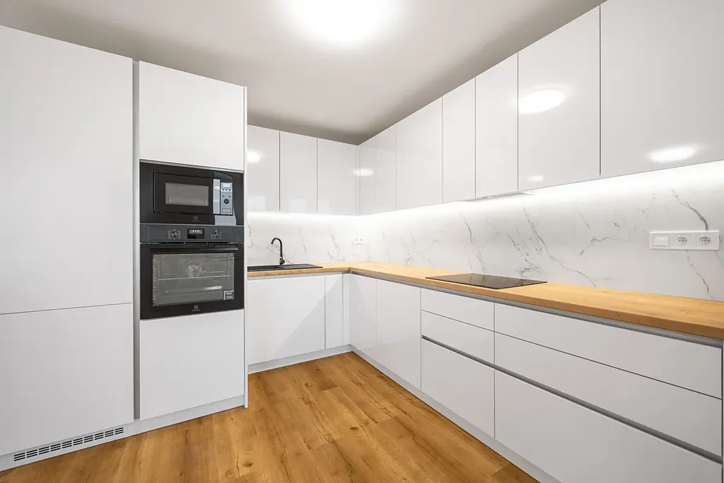 - nová kuchyňská linka vyrobena na míru se spotřebiči (značková elektrická trouba, myčka, indukční deska, digestoř, osvětlení, dřez)