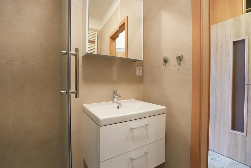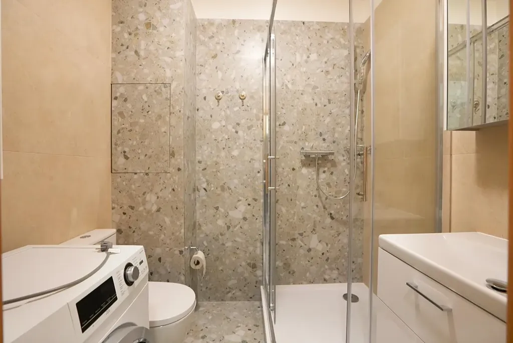 - nová koupelna se sprchovým koutem a pračkou