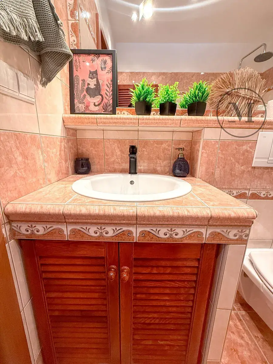 Vše je udržované, povrchy po celém bytem promyšlené a lehce umyvatelné.
