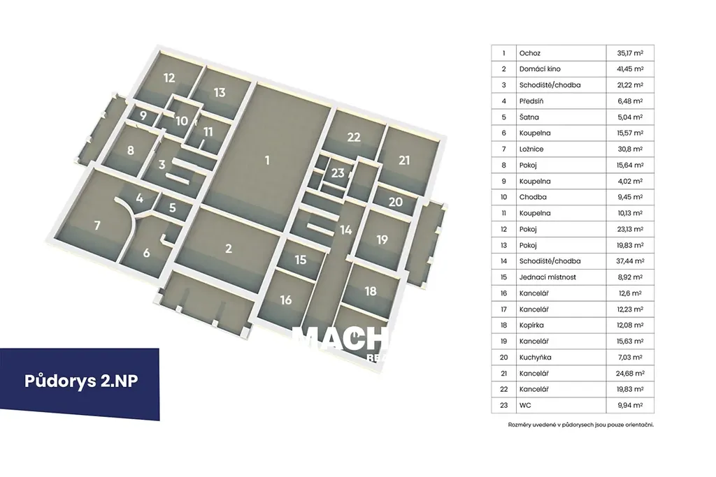 - Luxusní rodinné bydlení – komfortní dispozice s ložnicemi, dětskými pokoji, společenskými prostory i pokoji pro hosty.