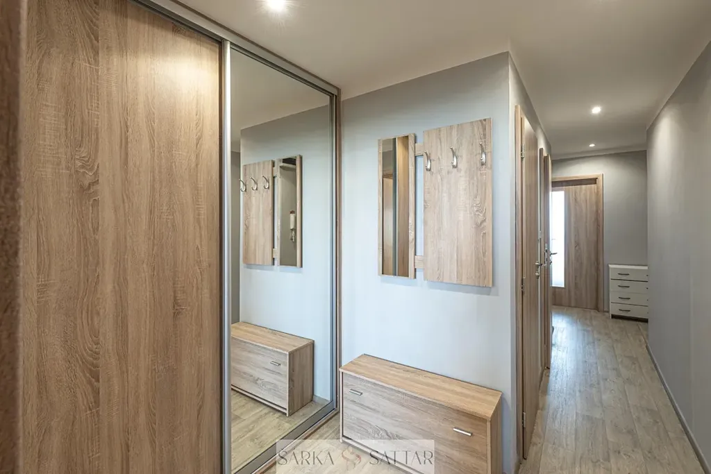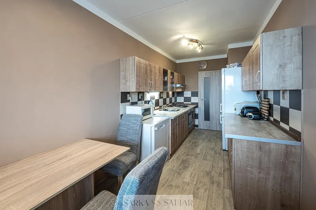 Prostorný obývací pokoj (19.5m2) se vstupem na prostornou lodžii s posuvným zasklením, samostatnou kuchyň (11m2) vybavenu el. troubou, plynovou varnou deskou, myčkou, lednicí s mrazákem. Obě ložnice mají východní orientaci. Koupelna má vanu dále umyvadlo, přívod na pračku. Toaleta je samostatná. V bytě je vestavěná skříň u vstupu a také vestavěný úložný prostor.